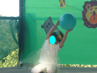 As nossas meninas preferiram mostrar as suas habilidades com bolas e criamos uma coreografia tendo como base musical um instrumental de Jardins Proibididos, versão pan pipes.